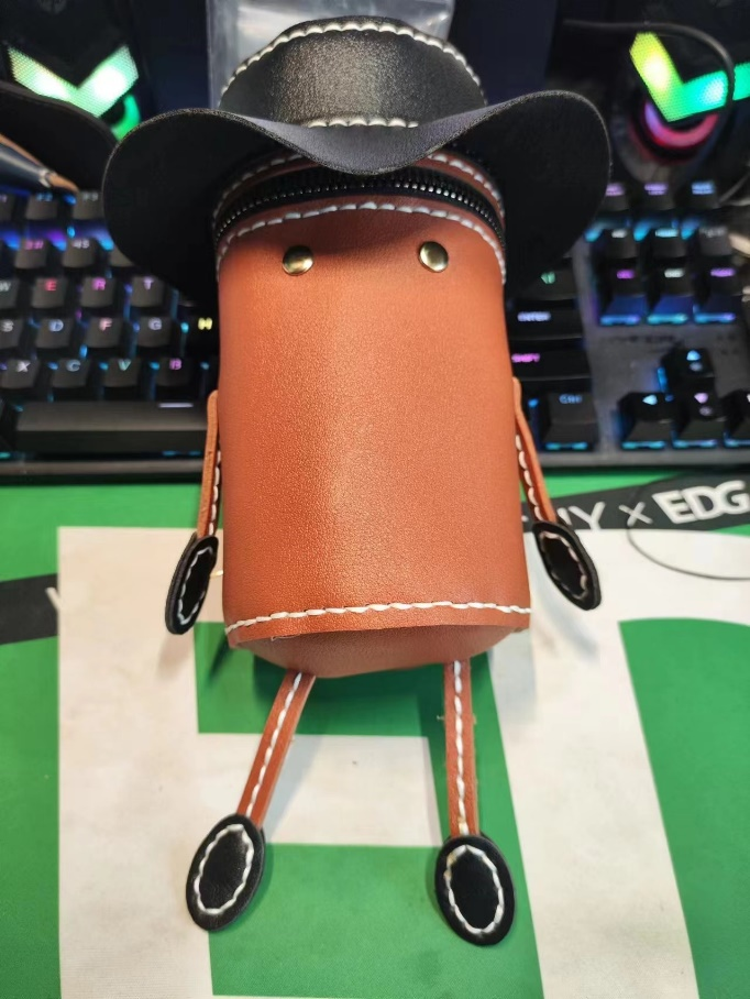 第一次制作皮具会有些无从下手的感觉,导致在做第一个皮具钱包的时候在裁皮料的时候就出现各种问题,皮料太软了,用壁纸刀裁剪时很难割断它的纤维层,多尝试后能好一点,但是新的问题又出现了,由于是安装自己的想法做的钱包所以没有参照,只能自己定好尺寸,最后发现钱包的尺寸稍微的有一点小,吸取了这个教训后,制作第二个包包与第三个包包的时候就好多了,我会现在纸上画出大致的形状,然后算好各处的尺寸,在皮料上画出大小后在裁剪皮料,这样较为准确一点。给皮料打孔也是渐渐的熟能生巧,越来越熟练了。制作皮具很考验一个人的耐性,皮具的从无到有,从剪裁到缝制,从一个小零件再到整体,完成一件皮具会让人非常有成就感。