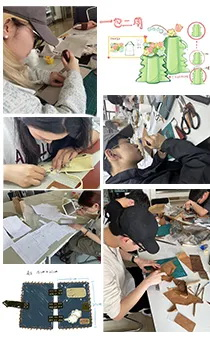 在课程中,我了解皮具艺术和金属饰品设计艺术是一种非物质文化遗产,它经过千百年的演化和进步已经形成一种独立的设计和艺术门类。在课程中除了了解皮革的特性和颜色,我还知道了不同国家和地区的皮革工艺和文化传统。比如,意大利和法国都有着悠久的皮具生产历史和高度定制的文化,在传统技艺上有极高的造诣。亲手制作皮具过程很漫长也很有趣,总是充满挑战。在实践中,我从设计、制版、裁切、缝制、打磨等的一系列工序中得到自己的小作品,在完成产品后,我感到很有成就感,更加热爱这个设计加手工创造的新天地。