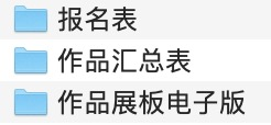 (1)将作品展板、作品模型照片和视频(如有)、报名表(word和pdf两版)、汇总表分别放在三个文件夹里。如图: